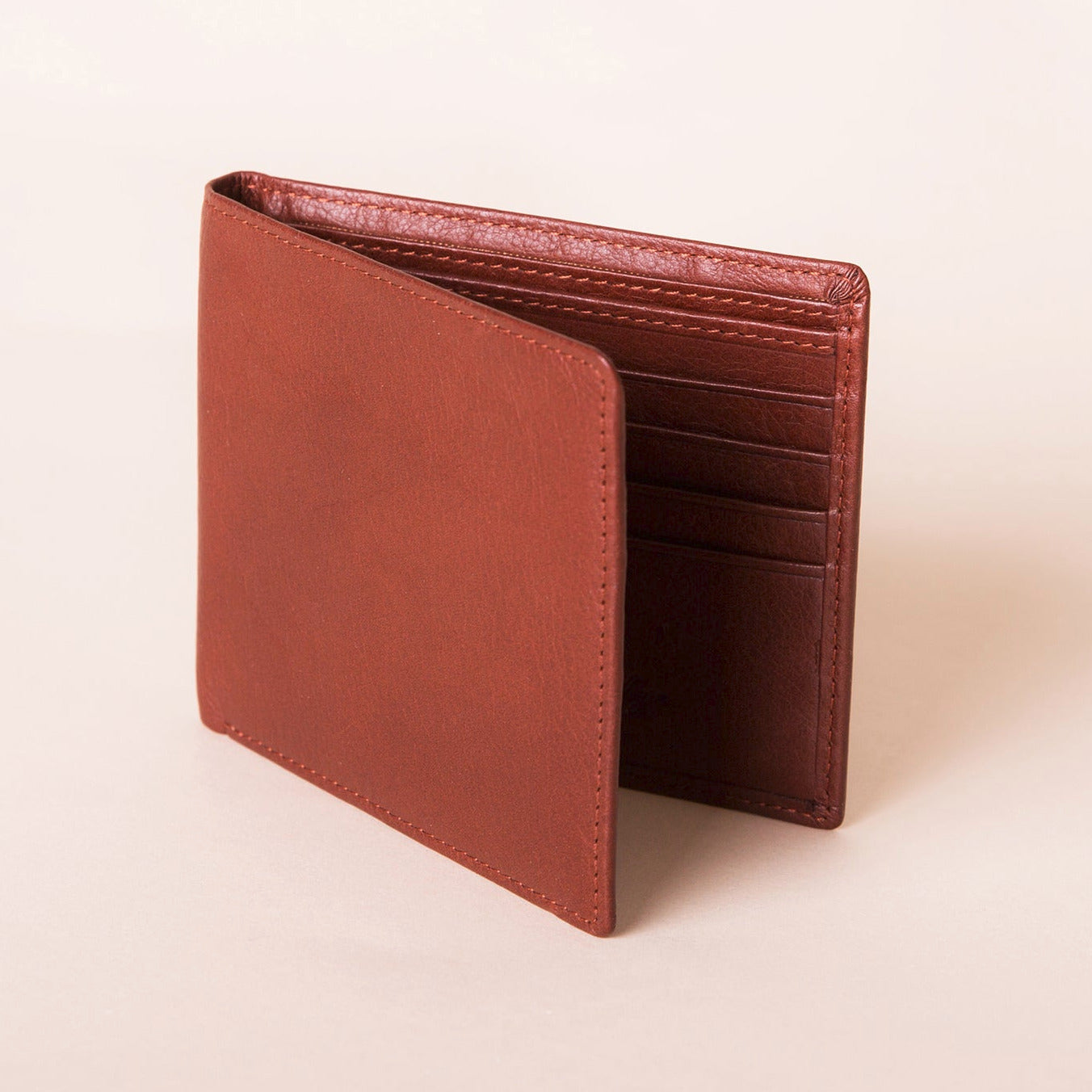 A slim design made with an RFID-blocking lining to protect against identity theft, a divided bill compartment, five card slots, two slip pockets, and an I.D. window.