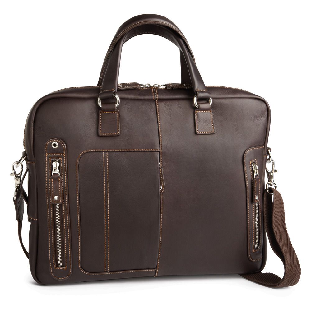 This statement-making design in rich leather features four exterior pockets plus business organizer and computer sleeve inside.