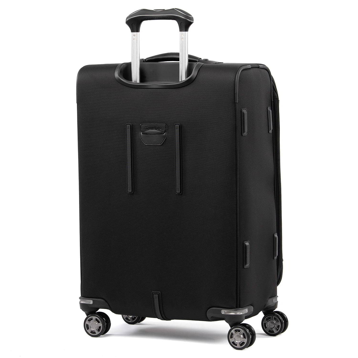 For effortless mobility, this 25” suitcase is equipped with our PrecisionGlide system—eight MagnaTrac® self-aligning spinner wheels guided by an adjustable PowerScope extension handle with patented Contour Grip, ergonomically designed to be easy on the hands and wrists.