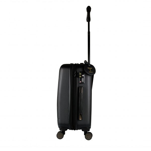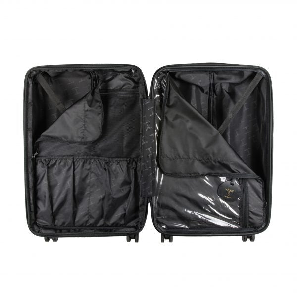 Canadian designed ABS hard shell cases are fitted with multi-function interior pockets, quiet rolling wheels and telescopic handles.