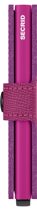 Side view of the fuchsia mini wallet. The SECRID logo is printed in white.