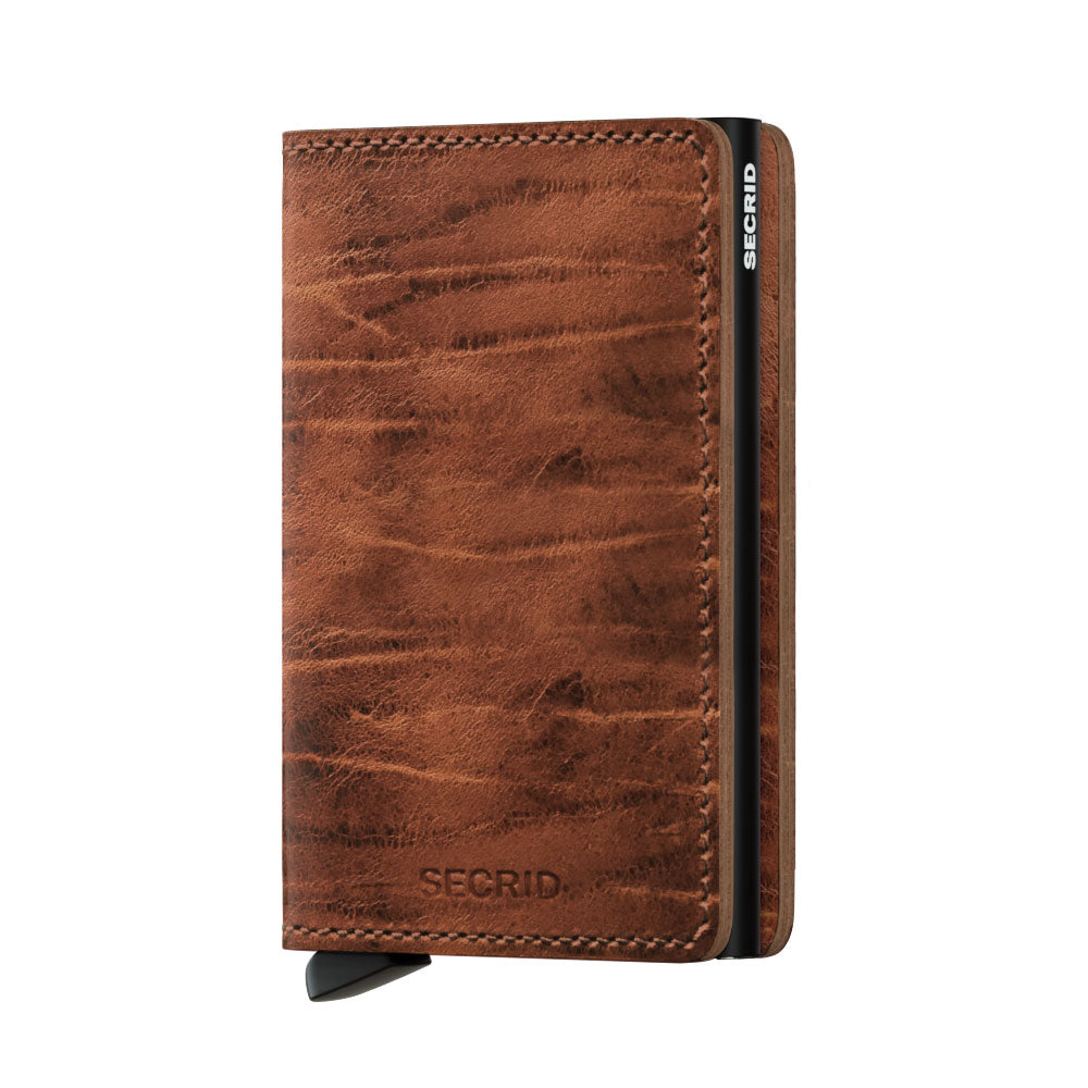 Finished with wax and oil on European cowhide, made in the Netherlands. The coating is transparent and natural due to the use of wax, oil and grease. The hard carnauba wax makes the leather scratch-resistant and water-repellent. Small in size and surprisingly large in storage capacity, the Miniwallet combines the best of both worlds. The exterior holds banknotes, receipt and cards, while the aluminum card protector allows you to slide out cards with one simple motion and protects them from bending, breaking and unwanted wireless communication. Holds: