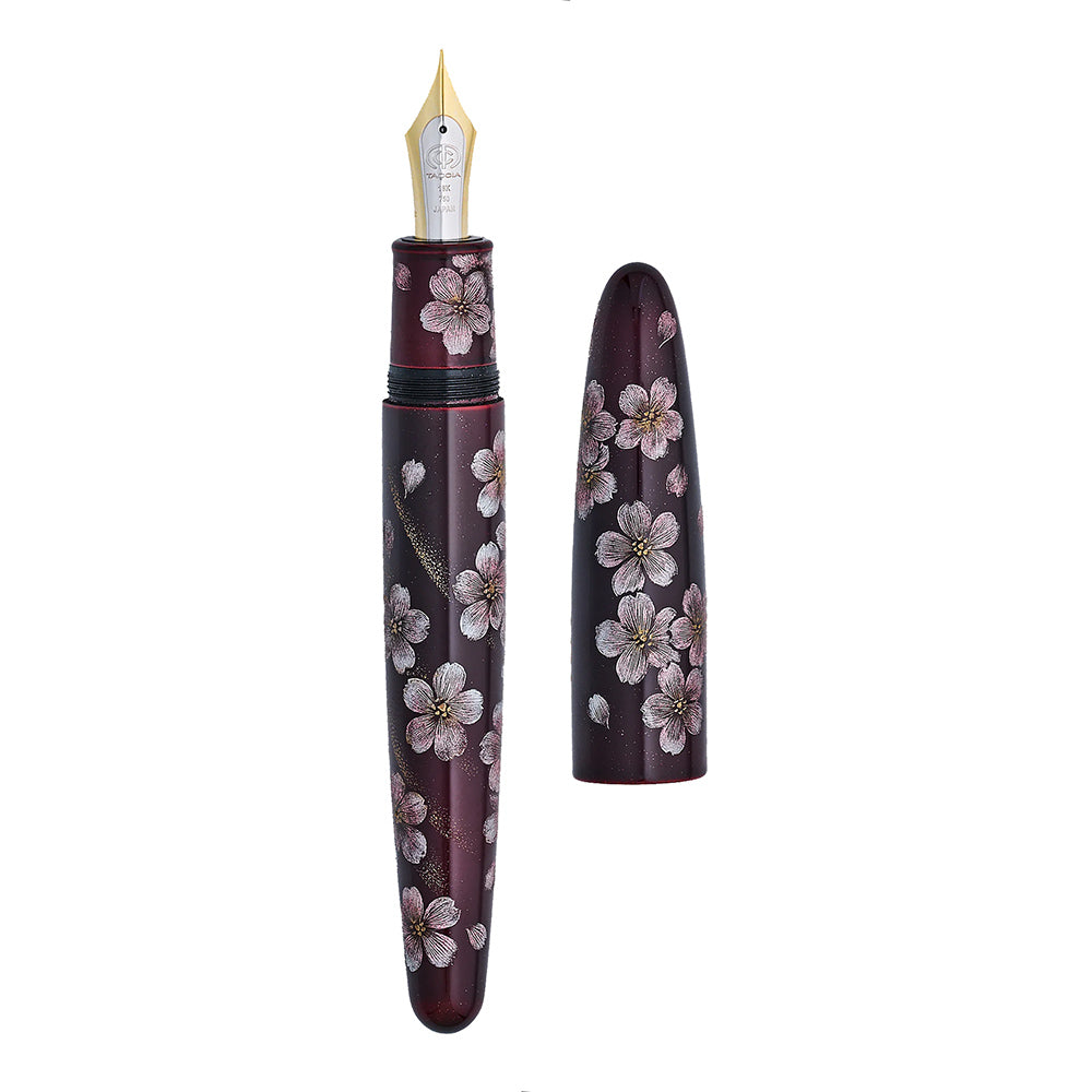 Limited to 30 pens. The TACCIA Empress Aka-Fuji & Sakura Chinkin LE is fitted with a specially made bicolor 18 karat gold KOP nib.