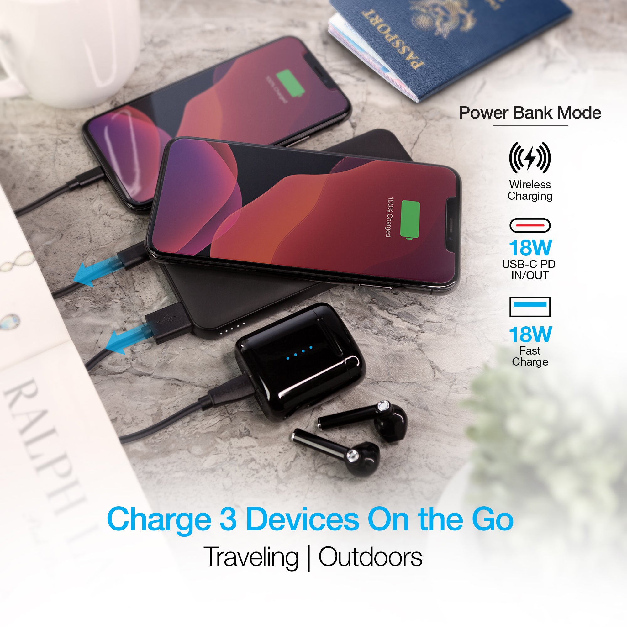 • Power Bank Mode: 10W Wireless + 18W USB-C PD + 18W USB Fast Charge