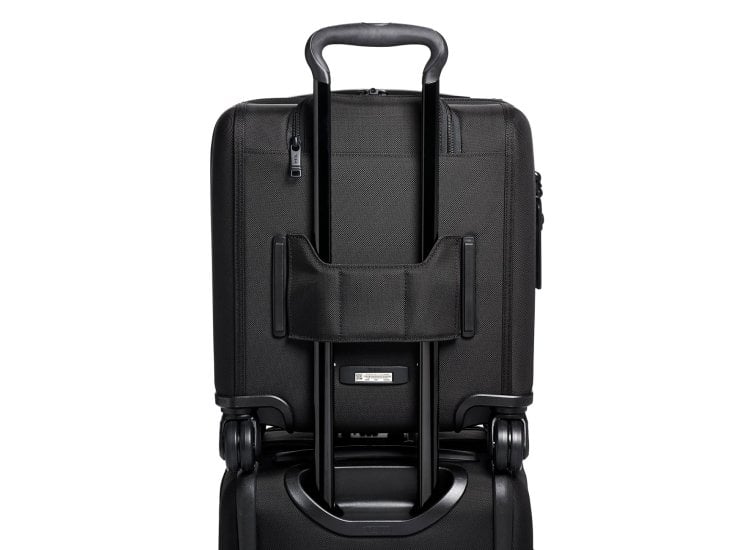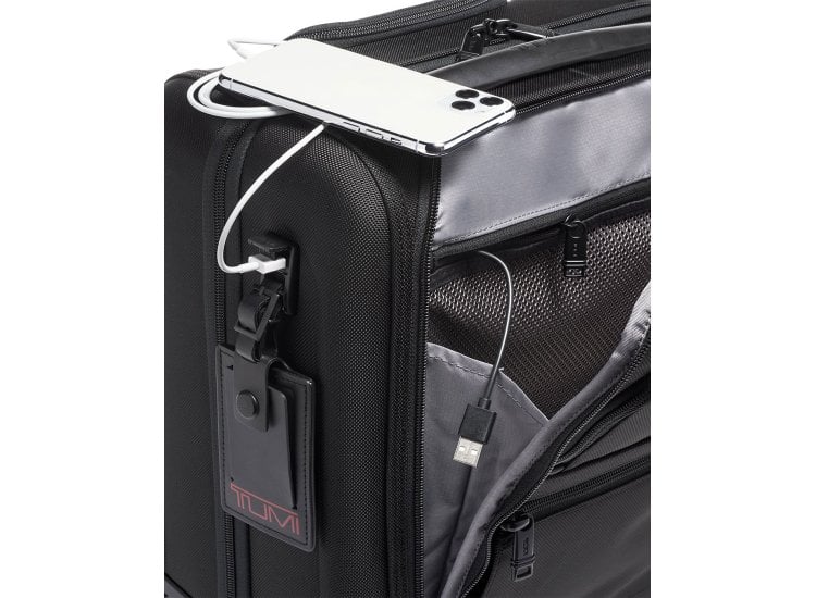 An even smaller take on our Compact 4 Wheeled Brief, this iteration is designed to fit under the seat on most airplanes. With the option of being carried or wheeled, it gives you flexibility wherever you need to travel. Furthering its versatility, an add-a-bag sleeve allows it to be stacked with other luggage. It’s also equipped with a built-in USB port to keep you connected on the go, as well as a removable file divider/laptop compartment. Numerous organizer pockets keep smaller items in order. Power bank sold separately.