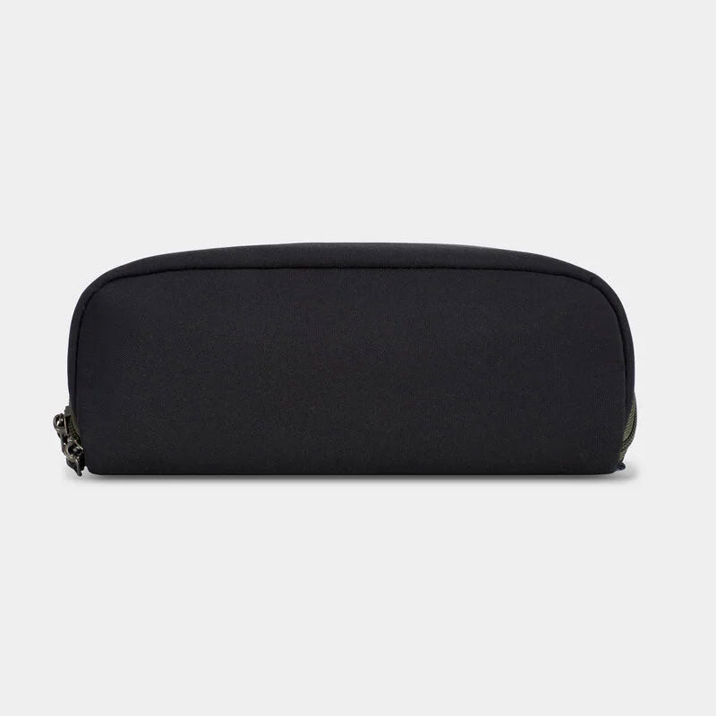 • Two sections are divided by a center wall with a zippered stretch pocket for the small stuff that gets lost easily, like a Sim Card and pin, and 3 elastic loops to hold your smart cards, portable hard drive and other gear.