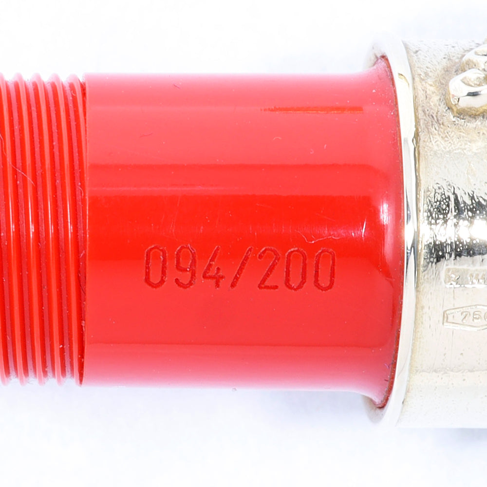 The fountain pen is marked #94 out of 200 and comes complete with all original packaging and documents. Please review the pictures in the listing carefully as everything is new and unused; however, the outer box and the red presentation box have suffered some natural decay, and the color has marked the inside of the box.