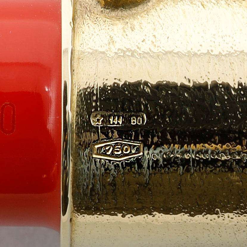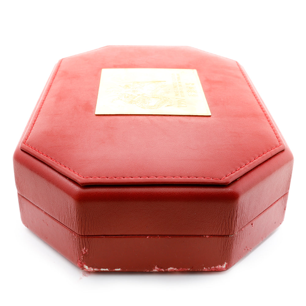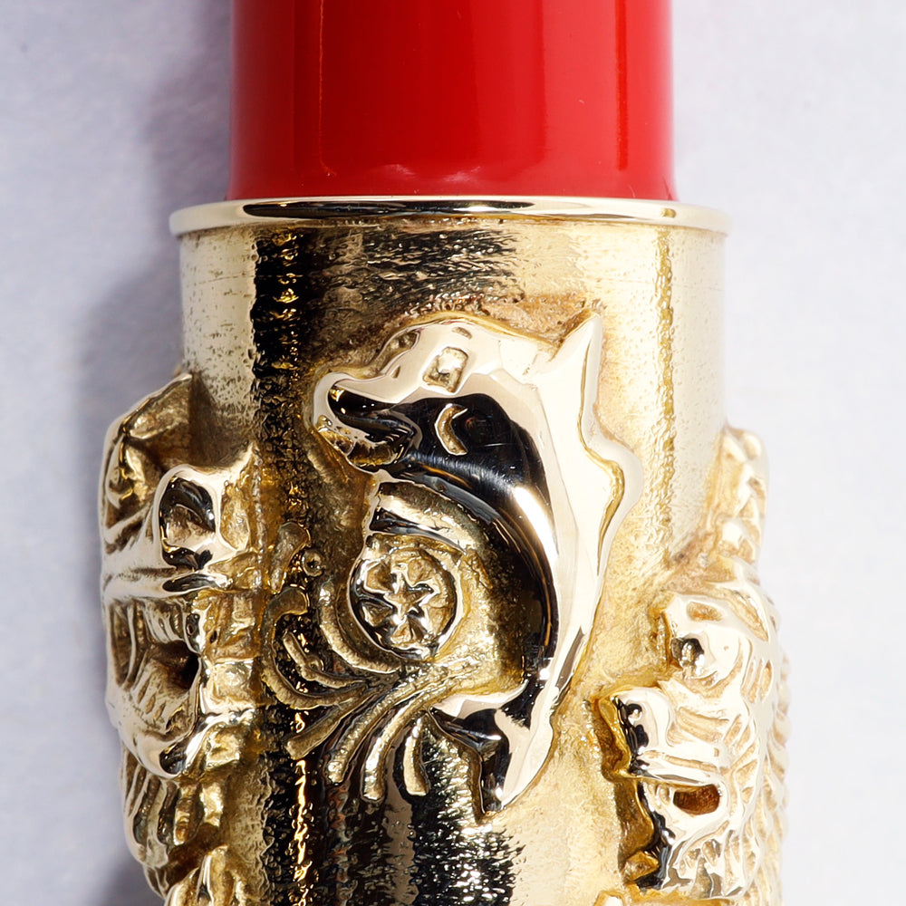 This distinguished writing instrument shows distinctive aspects of both Hong Kong and China in solid 18k gold. The cap displays treasured symbols of both Hong Kong and China, with the Bauhinia flower encircled by the words "Return to the Motherland" enameled in the original red color of the Association's official logo. The clip is embellished in the same hue by a thin linear element reminiscent of basic calligraphy. The band around the cap synthesizes the Great Wall of China, one of the most recognized monuments on this earth, the OMAS logo emerging from one of the Wall's majestic gates, and the 4 ideograms meaning "Return to the Motherland" in Chinese.