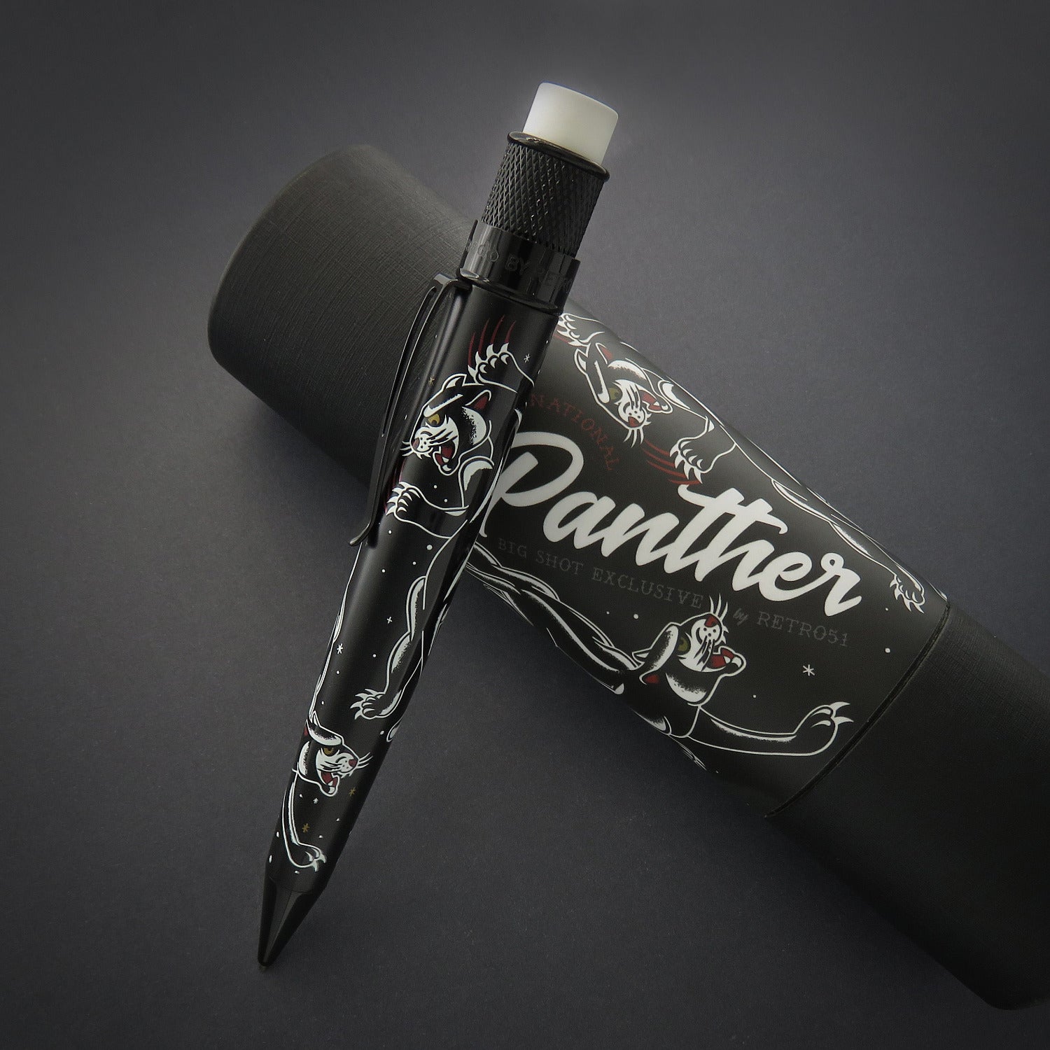 The matte black barrel and polished accents are contrasted against the white/glow-in-the-dark printing with gloss coating over the panthers.  Pounce on this limited edition of 200 Big Shot Pencils while supplies last.