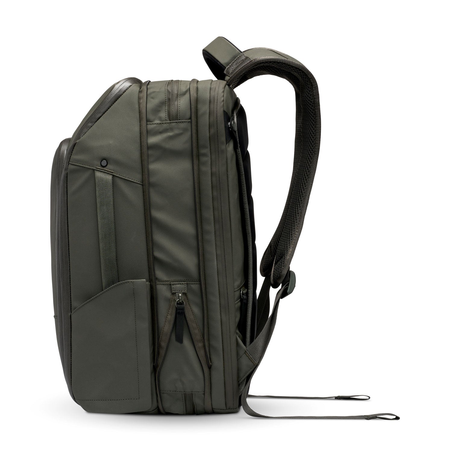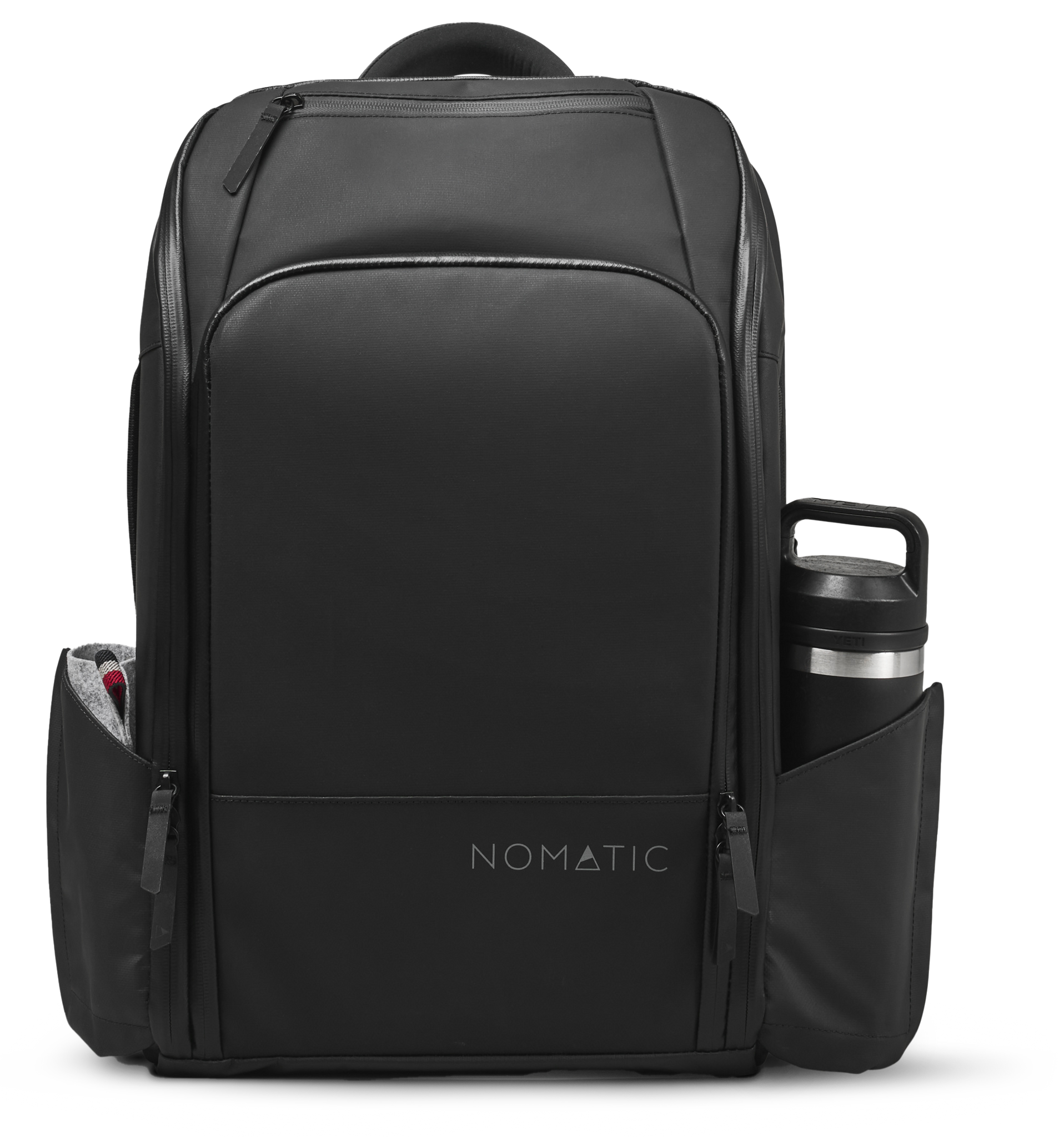 Your ultimate companion for life's adventures. Our innovated, patented strap system seamlessly transforms this backpack into a briefcase for those professional moments. Navigate airport security effortlessly with the TSA-approved fold-down laptop pocket. Plus, our magnetic water bottle pockets. Material: face coated nylon arid polyester. Black